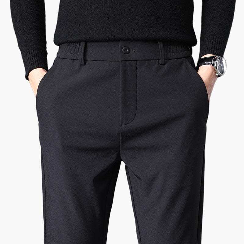The perfect combination of comfort and style thanks to the 5% elastane content, which provides an elastic waistband. These slim-fit men's pants made of soft cotton impress with their modern casual look and are perfect for the office. The business casual stretch pants can be ideally combined with a polo shirt or a sweater and casual leather shoes.<